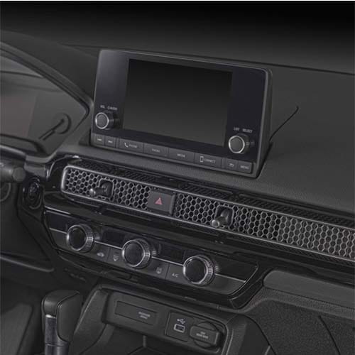 The 107-HO1 is designed to fit the 2022-UP* Honda Civic and is exclusively manufactured to install Pioneer’s 6.8-inch modular receivers, like the DMH-C2550NEX and the DMH-WC5700NEX+, into the dash. Installers should refer to the radio manufacturer for the most up-to-date information. The 107-HO1 has a custom textured housing with a gloss cover panel to match the factory finish and aftermarket radio. Installing an aftermarket radio can upgrade the sound quality and provide additional features the original factory radio couldn’t offer, but this dash kit is required to make it fit.