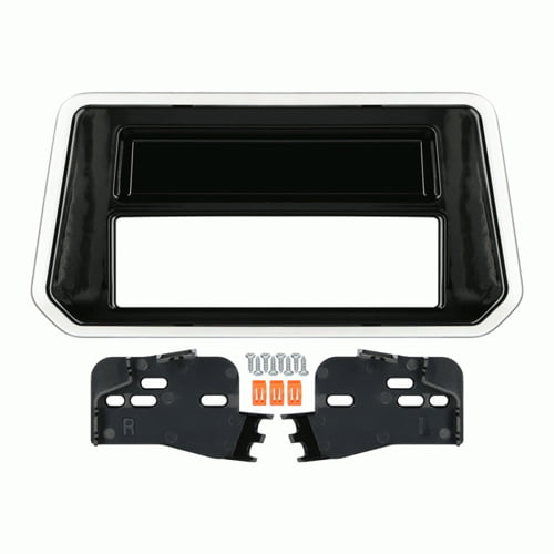 (1) This kit can only be used with an ISO DDIN radio with an “L” shaped chassis design, with the radio chassis at the bottom of the screen. As of this writing, only the Alpine INE-W967HD (discontinued, replaced by INE-W977HD), iLX-107, and iLX-207 have this design. Also, The Pioneer modular radios, DMH-C2550NEX and DMH-C2500NEX, can also be used with the included adapter brackets.