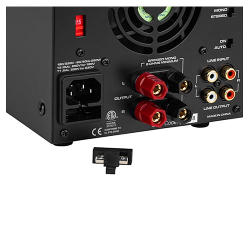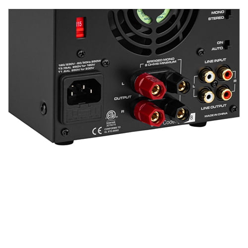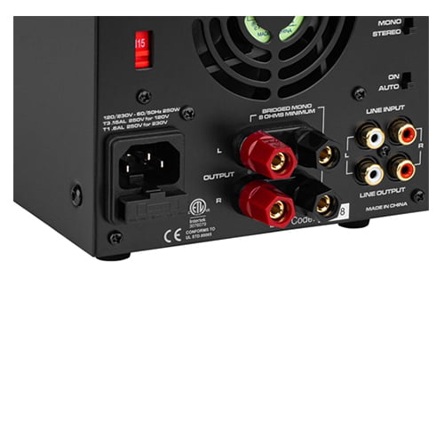 Dayton Audios versatile APA150 can deliver 75 watts into 2 channels, or 150 watts into 8 ohms when set to bridge-mono mode. A built-in, switchable low-pass filter makes this a great subwoofer amp, and full range line-level outputs allow for bi-amp configurations.