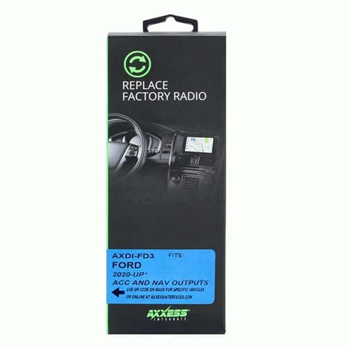 This vehicle-specific interface is designed for use when installing an aftermarket radio. It retains R.A.P. (Retained Accessory Power) and provides 12-volt 10-amp accessory power and NAV output for parking brake, reverse, and speed sense. This interface features easy plug-n-play connectivity and a pre-wired harness is included for the AXSWC, which is sold separately.