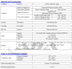 - • U/UTP, 23AWG solid bare copper, CAT.6, CMP