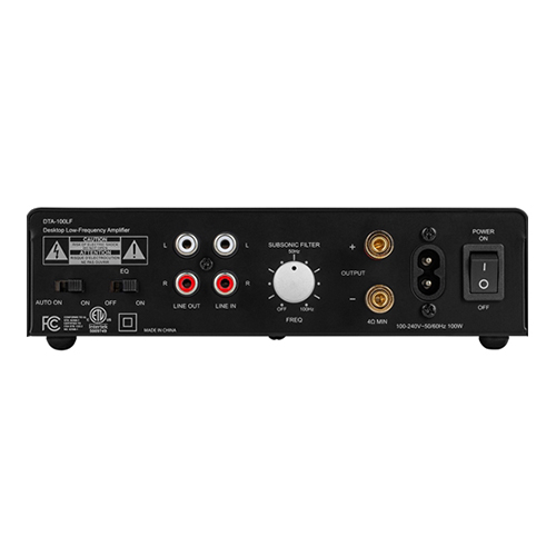The DTA100-LF is a stylish desktop amplifier designed by Dayton Audio specifically for low-frequency application. This low profile amplifier features an ultra-stable DC power supply and optimally designed Class-D circuit topology to give you 100 watts at 4 ohms. Use the three built-in filters to optimize the output and power your drivers to their full capability. After dialing in your tone, the DTA-100LF even manages its own power state with the auto-on feature to function as a true set-and-forget unit!