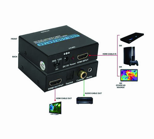 - • Converts HDMI Signal to SPDIF with Toslink & RCA Digital Audio or 3.5mm Stereo Audio