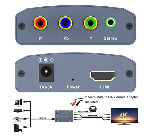 HDMI TO Component YPbPr + 3.5mm Audio Video Converter Support 480i/p 576i/p 720p 1080i, 1080P Resolution