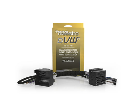 This T-harness simplifies the addition of digital signal processors and amplifiers in select Volkswagen vehicles that are not equipped with factory amplifiers. It conveniently installs behind the factory radio and offers audio input connections to DSPs and amplifiers. It also provides connections to the factory speaker wiring and a remote turn on output. It can be used with a Maestro DSR1 or AR and a compatible amplifier/DSP or with any amplifier/DSP by adding an ACC-RCA1 accessory. The DVW1 makes upgrading fast and easy.