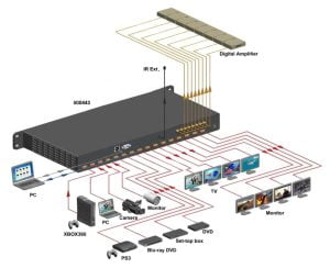 The HDMI 8×8 Matrix, 4K/60 (4:4:4) connects eight HDMI sources to eight displays. This 4K HDMI Matrix Switch provides eight HDMI outputs and each HDMI output is supporting up to 4K/60 (4:4:4) plus all 3D formats and supporting independent EDID control, with scaling capability so that different displays each with different resolutions can be simultaneously supported. It works with Blu-Ray players, Media Players/Streamers, Cameras, Set-Top boxes, Home Theater systems, and game consoles that connect to an HDMI display. Any source is accessible at all times by any display by selecting it via the supplied IR Remote Control, RS-232, TCP/IP or by using the selection buttons on the front panel of the 4K HDMI Matrix Switch.