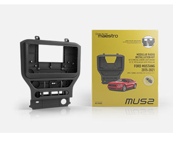 Dash kit and T-harness solution for 2015-2023 Ford Mustang with a 4.3″ OEM screen. Features interchangeable panels to allow the installation of a 7″, 8″, or 9″ modular screen radio. the provided T-Harness is Maestro head unit adapter ready.