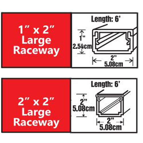 Perplas LARGE raceways measures 2” x either 1” or 2” x 6’ and is perfect for industrial and commercial settings, or when you simply have lots of cables to hide.