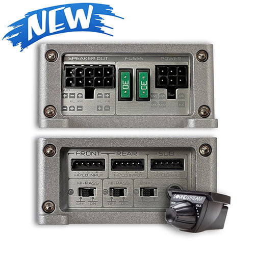 Perfect Amplifier for formulating a sound system where space is tight. Have a classic car, golf cart, side x side, where it’s challenging to install multiple amplifiers? Stealth ST5.1300D can do it with minimum power consumption. Don’t let these little monsters fool you. Class D full range technology’s latest and greatest technology allows us to pack 10 pounds of KICK YOUR ASS in less than 2-pound chassis. Today’s digital amplifier performance rivals traditional full-range applications thanks to high-power capability, maximum efficiencies, and low tolerance components. Minimal power requirements, ultra-micro footprint, unbelievable sound quality, and easy install make Stealth series amplifiers great for any car, motorcycle, boat, or off-road vehicles