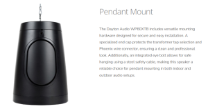 For ultimate flexibility, the Dayton Audio pendant indoor/outdoor speaker line offers multiple installation options, including pendant mounting, wall mounting, and landscape mounting. Designed to withstand the elements, these speakers feature durable, weather-resistant ABS plastic construction, ensuring long-lasting performance in any environment. Whether you’re enhancing an outdoor patio, a commercial venue, or an indoor space, Dayton Audio pendant speakers provide reliable, high-quality sound with versatile mounting configurations to suit your specific needs.